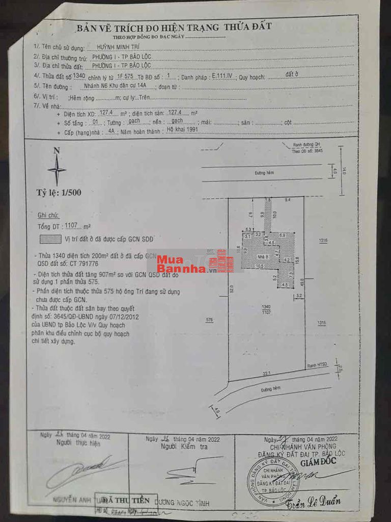 - Tổng diện tích 1107m2 thổ cư 100%