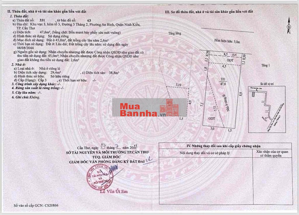 - Pháp lí : Thổ cư nhà hoàn công