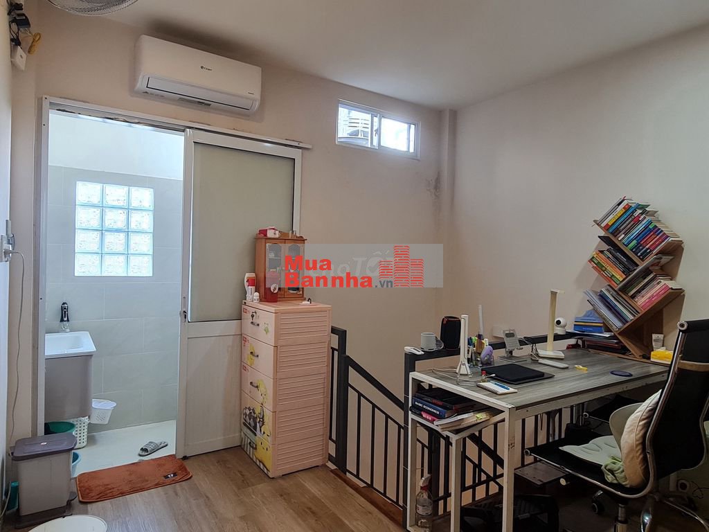 nhà 30m2 vuông vức, kết cấu 1 trệt 1 lầu, 2 phòng ngủ, hiện 1 phòng dùng để làm việc, 2 toilét, vị trí hẻm 4m xe hơi