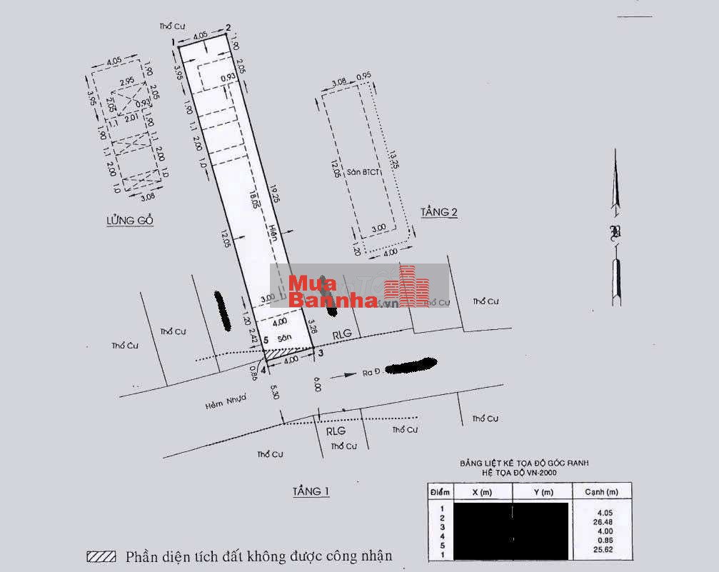 • Diện tích: 4m X 25m = 105m2(Công nhận đủ, vuông vức như tờ A4, không lỗi phong thủy).