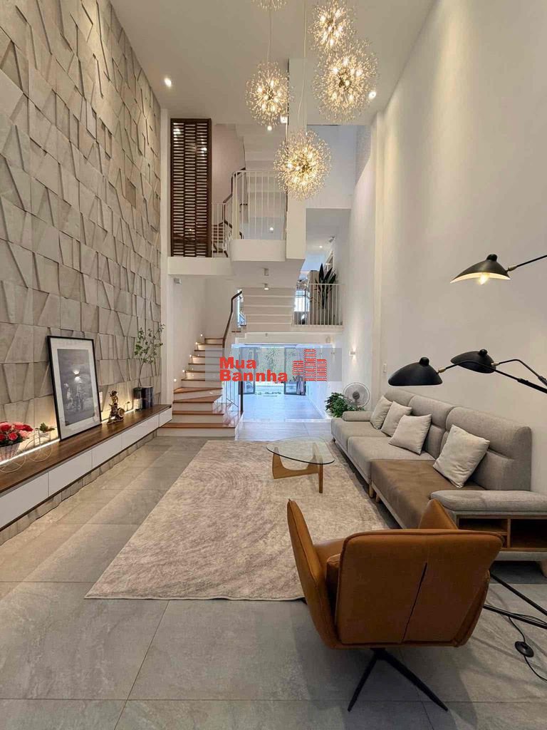 - Kết cấu : 1 trệt 1 lửng 3 lầu gồm gara xe hơi phòng khách bếp 4 pn 6 tolet phòng đa năng phòng thờ phòng giặt sân thượng ( Có lỗ chờ để gắn thang máy )