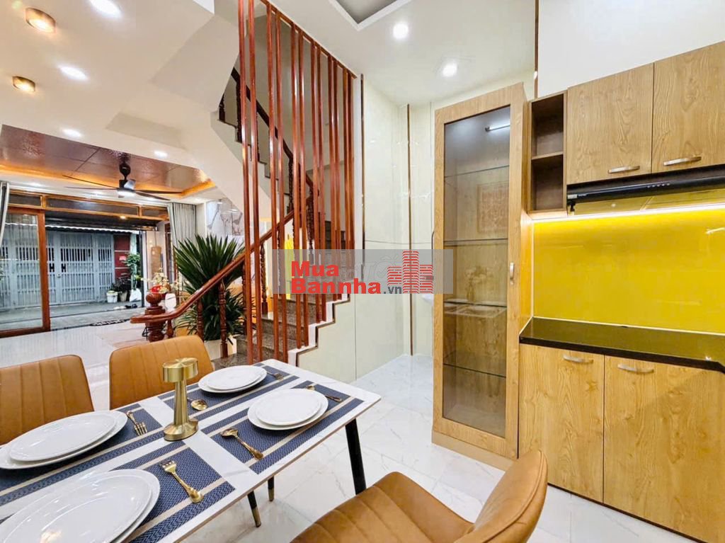 + Kết cấu: Nhà 1 trệt, 2 lầu, sân thượng, nhà rất đẹp và mới, có giếng trời, phòng khách, có chỗ để xe máy rộng rãi, 3 phòng ngủ, 3 nhà vệ sinh, có phòng thờ, phòng bếp, khu giặt phơi, phòng khách, khu dân trí cao, sang trọng, full nội thất cao cấp vô ở ngay.