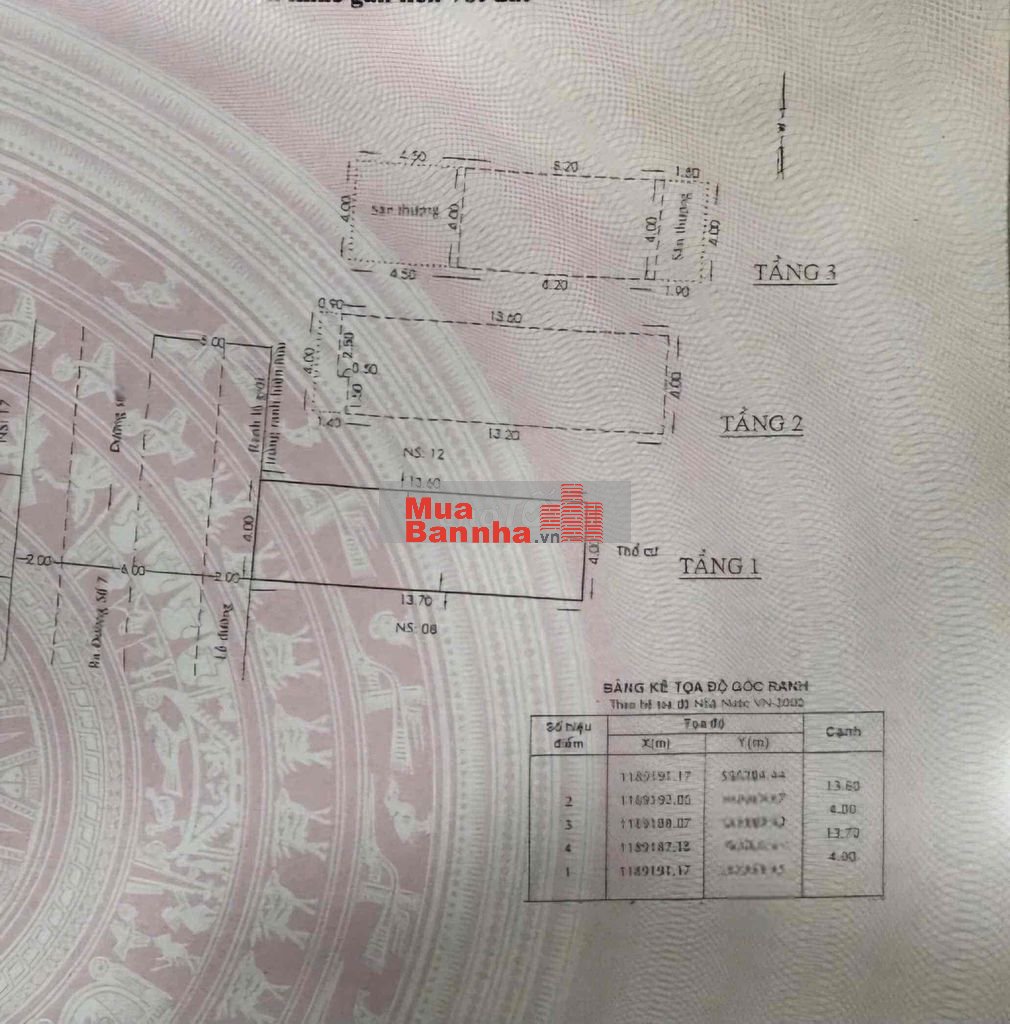 Diện tích đất thực tế: 52.9m² (ngang 4m, dài 14m).Kết cấu 1 trệt, 2 lầu, tổng cộng 3 tầng, phù hợp cho gia đình đông người hoặc kinh doanh