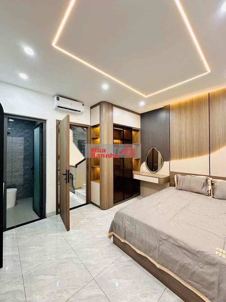 Thiết kế : 1 trệt, 3 lầu, 4PN, 5WC, sân thượng, sân xe hơi rộng, trồng cây.