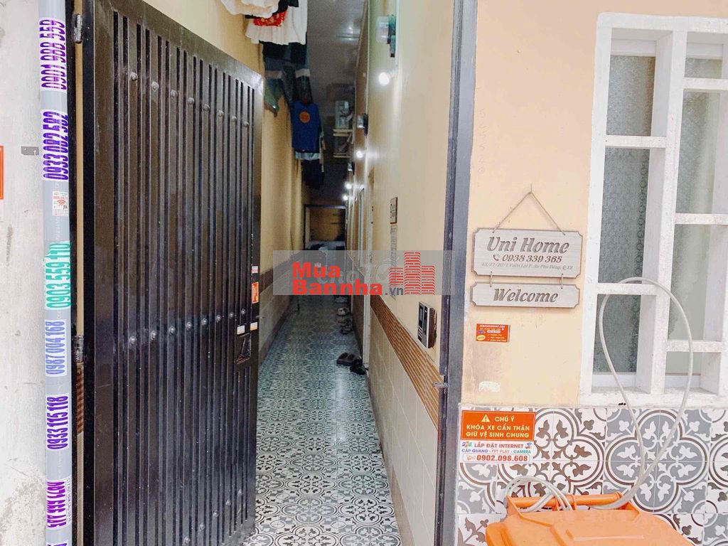 Kết cấu trệt lầu, 9 phòng full nội thất đang cho thuê, + 01 nhà xe, hệ thống cửa vân tay + camera giám sát,