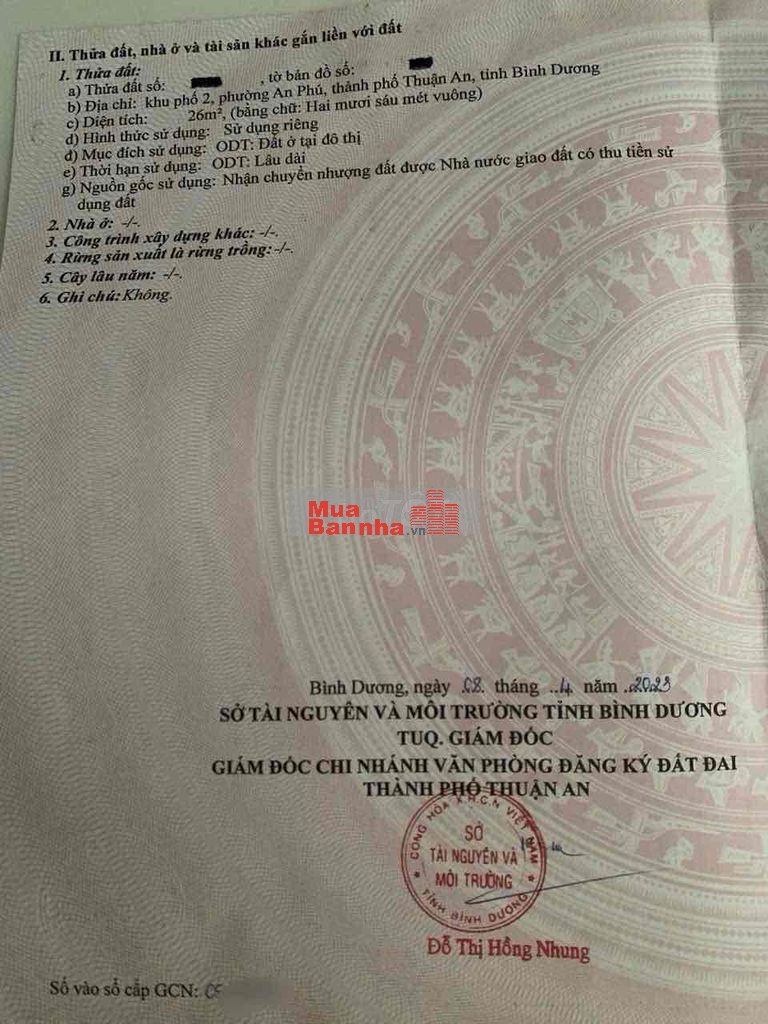Thổ cư 100%. Sổ hồng riêng