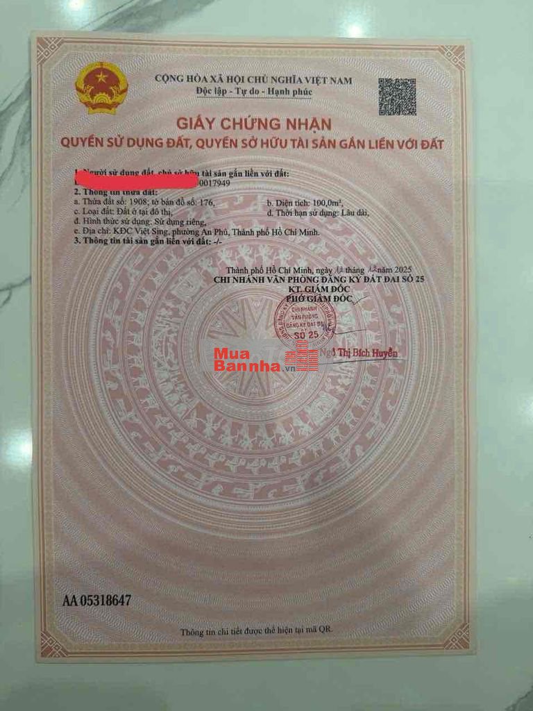 cần bán nhà d1 kdc vietsing dt 200m2 full thổ cư