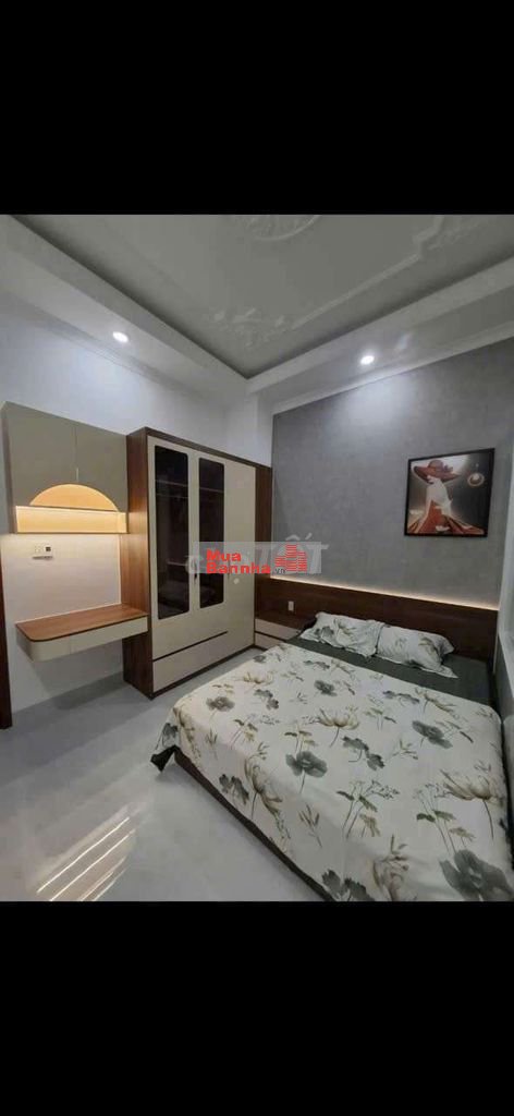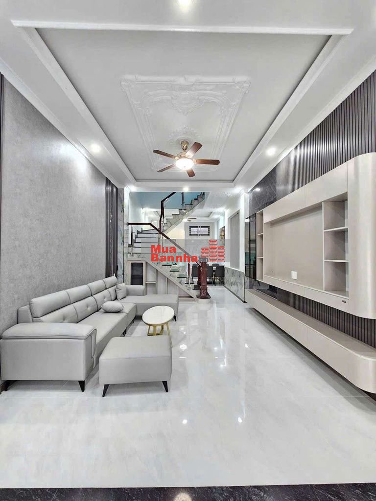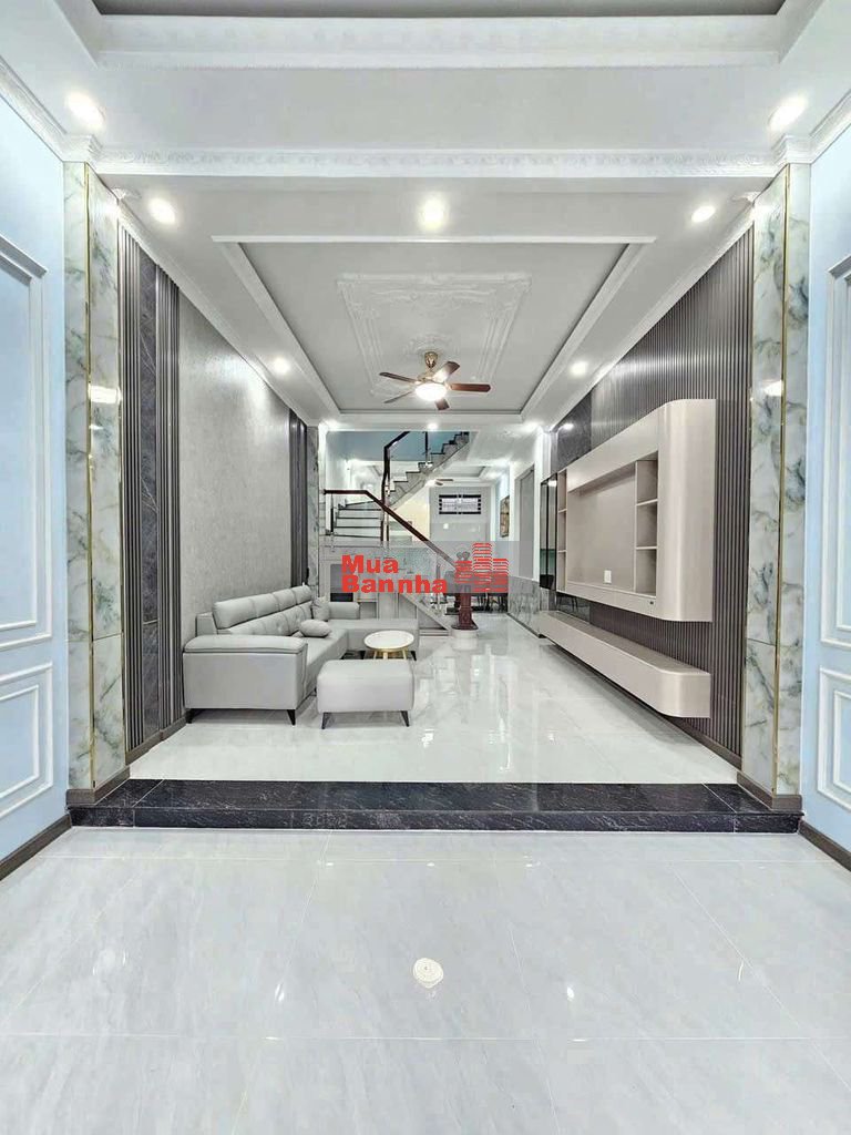 Nhà 1 trệt 2 lầu, sân xe, phòng khách, nhà ăn, 4 phòng ngủ, 3wc, phòng thờ, sân thượng trước và sau.