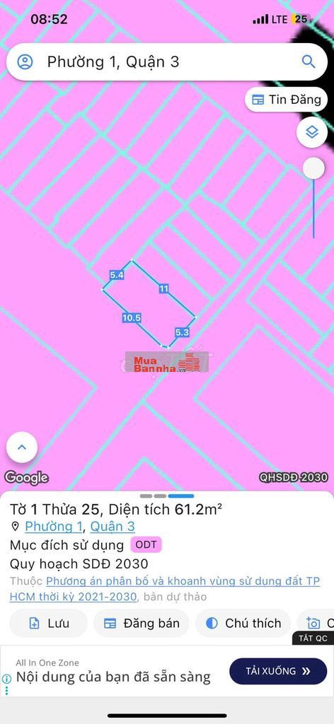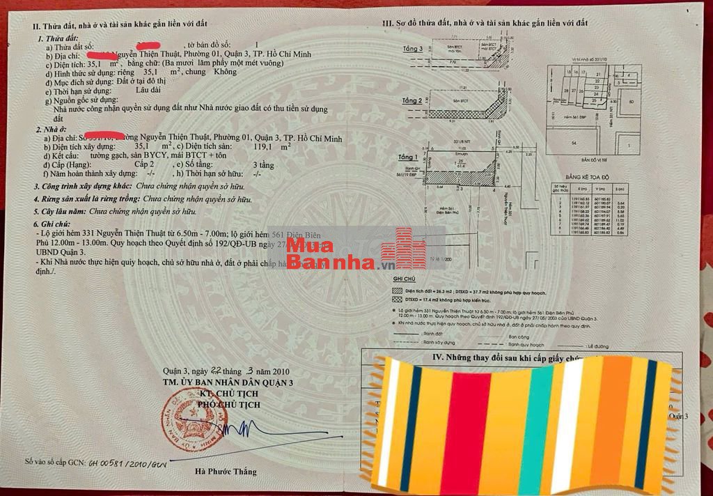 Diện tích: 61,4m2. căn góc 2 mặt tiền hẻm 5m và 8m, cách mặt tiền Nguyễn Thiện Thuật 30m, tài sản vị trí 2 của đường Nguyễn Thiện Thuật,