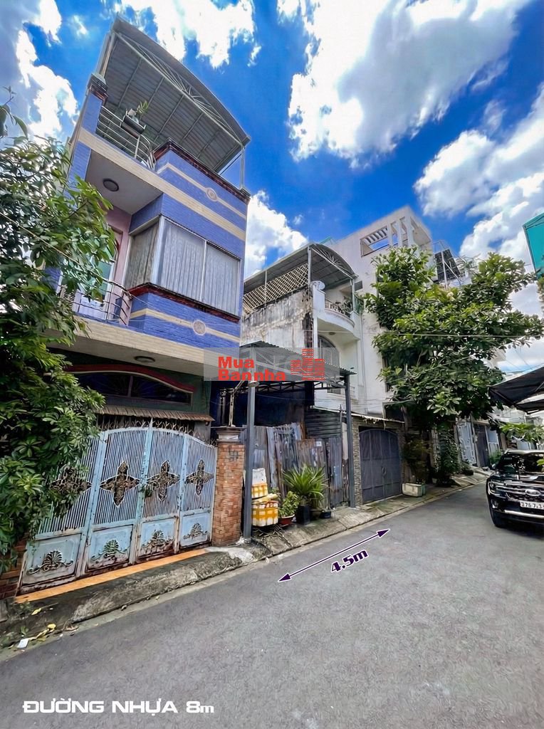Đường trước nhà 9m, vỉa hè 2m, xe hơi đậu trước nhà.