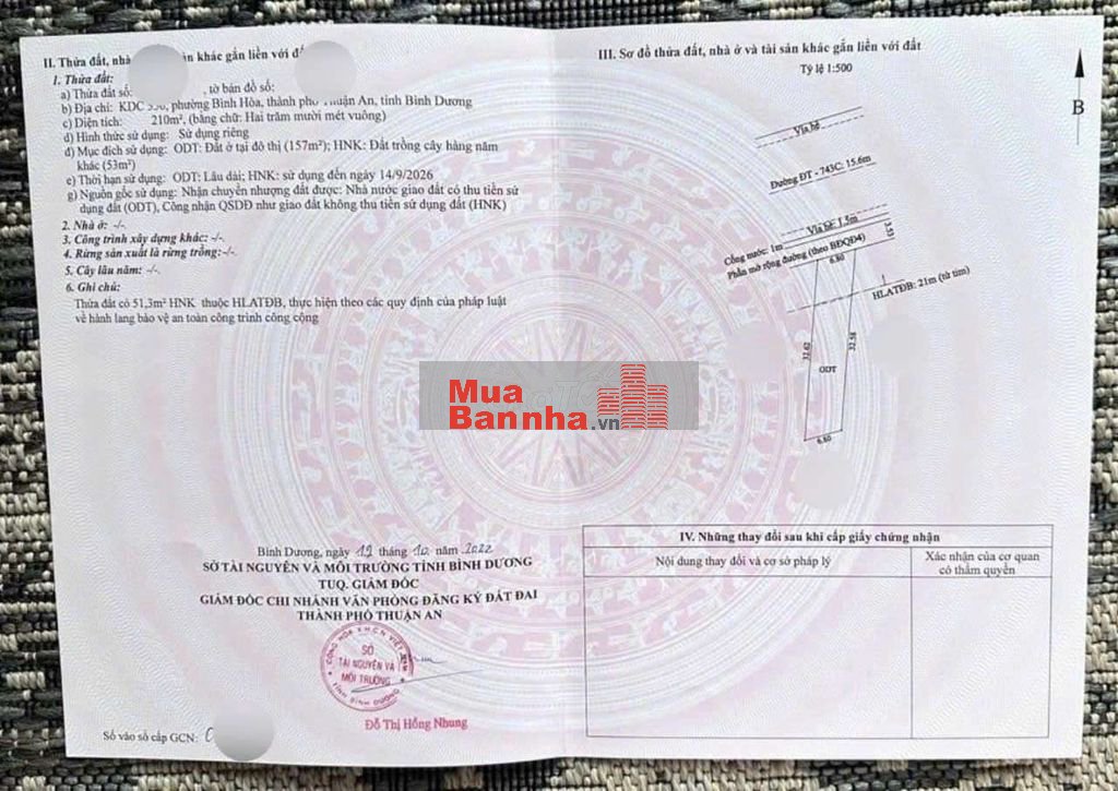 Thổ cư 157m2. Sổ hồng riêng.