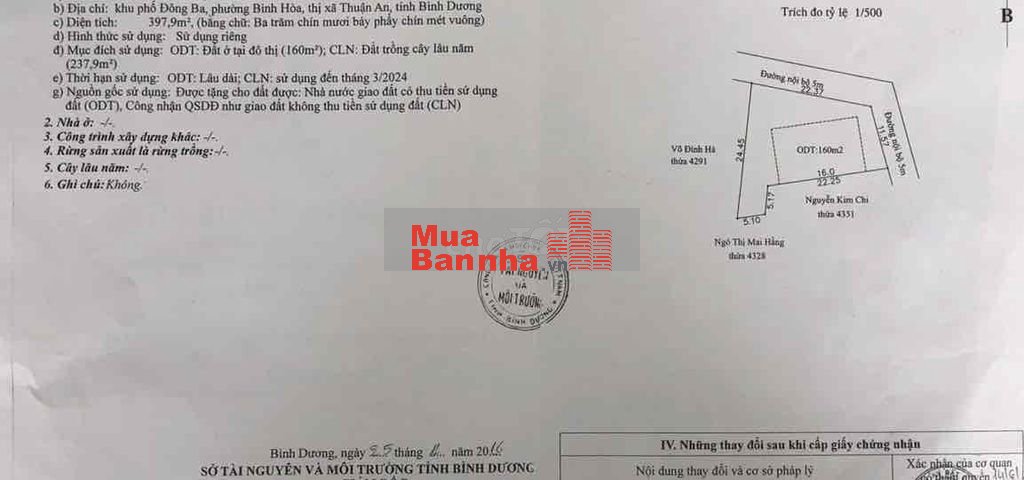 Diện tích: 400m²Thổ cư: 160m²