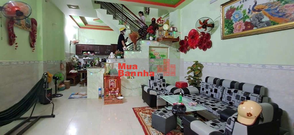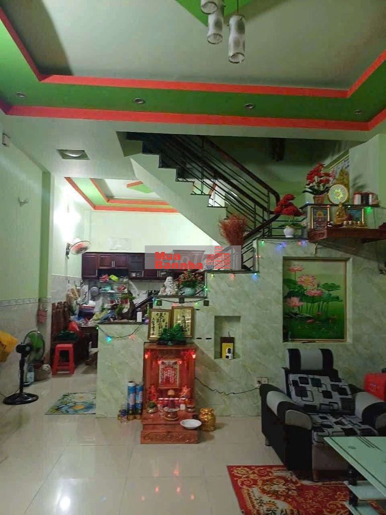 Nhà 1 trệt 1 lầu có sân xe , phòng khách, bếp, phòng thờ, 2 phòng ngủ, 2wc.