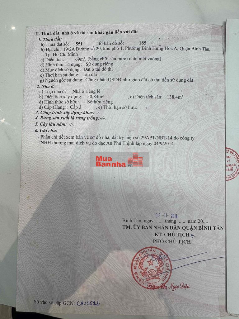 ĐC: 19/2A Đường 20 Mã lò,p.Bình hưng hoà A,Q.Bình Tân,TPHCM.DT : Ngang 05m ❌Dài 14m = 70m 03 tầng+ 01 sân thượng chuồng cu.Căn góc tiện Ở và kinh doanh.pháp lý sổ hồng riêng chính chủ.