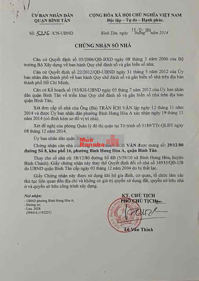 Quý vị đang xem nội dung tin rao "BÁN NHÀ ĐƯỜNG SỐ 8B BHH A BÌNH TÂN". Mọi thông tin, nội dung liên quan tới tin rao này là do người đăng tin đăng tải và chịu trách nhiệm. Muabannha.vn luôn cố gắng để các thông tin được hữu ích nhất cho quý vị tuy nhiên Muabannha.vn không đảm bảo và không chịu trách nhiệm về bất kỳ thông tin, nội dung nào liên quan tới tin rao này.