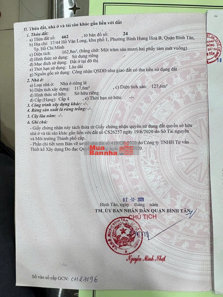 bán nhà hxh 37/44 hồ văn long . nở hậu