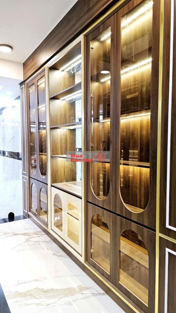 Kết cấu: 1 trệt + 1 lửng + 3 lầu (tổng 5 tầng). Trang bị: Thang máy 450kg cao cấp, nội thất cao cấp full option, chỉ cần xách vali vào ở ngay.