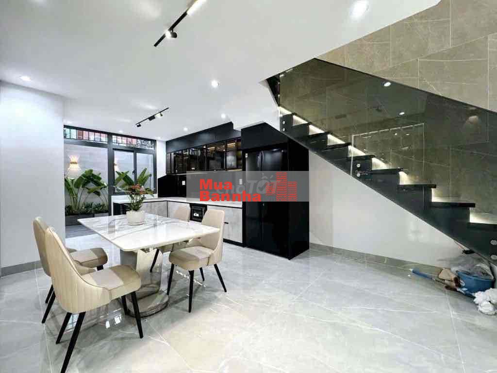 Diện tích 4m x 15m, nhà xây 1 trệt 1 lửng 3 lầu, tổng 5 tầng, bố trí 4 phòng ngủ, có phòng thờ và sân thượng riêng. Nhà do tôi tự tay thiết kế để ở và làm việc lâu dài nên làm rất chỉn chu, phong cách hiện đại, nội thất đầy đủ và cao cấp, mua về là sử dụng ngay không cần chỉnh sửa.