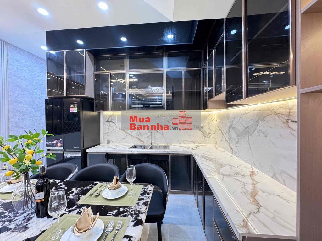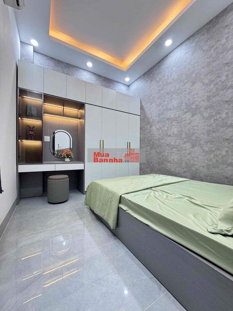 - Nhà mới xây hoàng thiện full nội thất đầy đủ công năng mẫu hiện đại vào ở ngay. Nội thất cao cấp có phòng ngủ tầng trệt cho người lớn tuổi, sân sau có nhà vệ sinh kết hợp giặc đồ... phòng khách tặng full sô pha kệ tivi, kệ trang trí, phòng bếp hệ tủ 2 tầng cao cấp