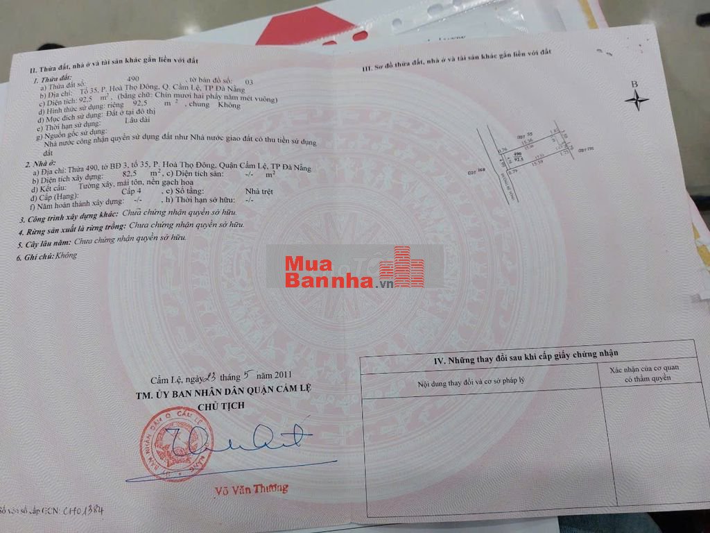 Diện tích: 92,5m2, 1PK,2PN,1 bếp, 1 WC, 1 sân phơi, 1 sân để xe máy, hướng Tây. Giá bán 3,7 tỷ VND.
