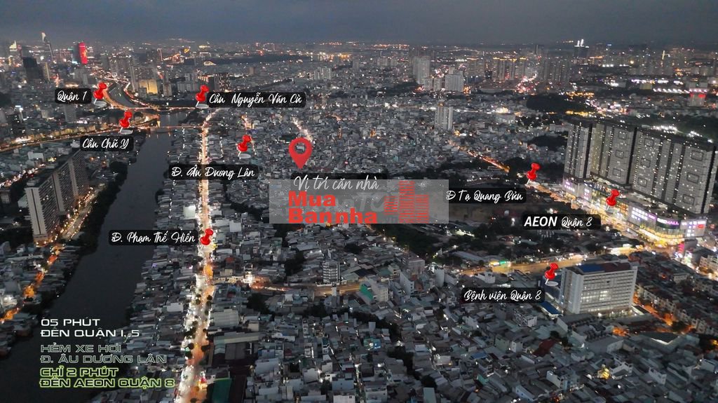 - Vị trí: Hẻm nhựa 6m đường Âu Dương Lân Quận 8, khu vực gần chân cầu Chữ Y, cách Quận 1 và Quận 5 chỉ 5 phút di chuyển (1,8km), cách AEON Quận 8 chỉ 3 phút di chuyển (600m)