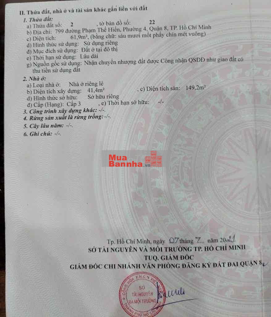 Quý vị đang xem nội dung tin rao "Bán nhà MT Phạm Thế Hiển,P4,Q8. DT: 67,9m2, 4 Tầng, 5PN". Mọi thông tin, nội dung liên quan tới tin rao này là do người đăng tin đăng tải và chịu trách nhiệm. Muabannha.vn luôn cố gắng để các thông tin được hữu ích nhất cho quý vị tuy nhiên Muabannha.vn không đảm bảo và không chịu trách nhiệm về bất kỳ thông tin, nội dung nào liên quan tới tin rao này.