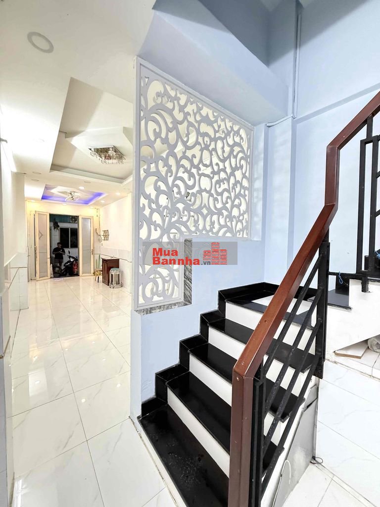 Nhà 1 trệt, 3 lầu, 5 PN, 4WC, sân phơi, 2 mặt tiền bắc + nam. Hẻm 4m, cách đường chính 40m, thoáng.