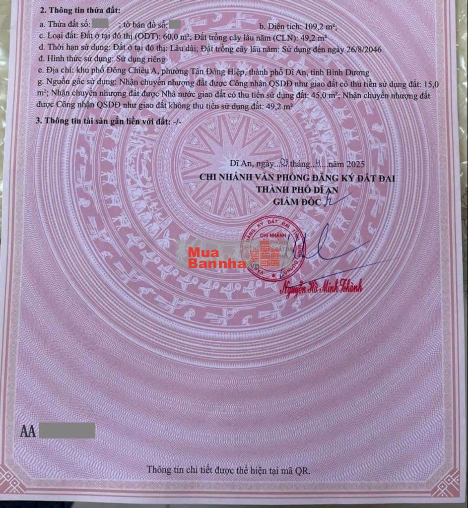 Thổ cư 60m2. Sổ hồng hoàn công