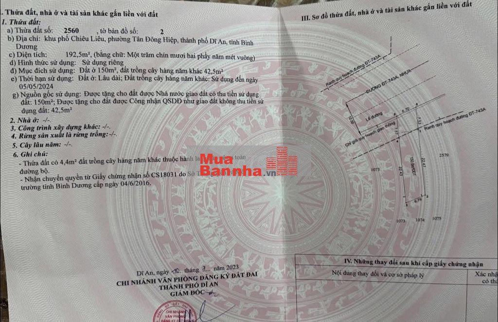📐 Diện tích: 192,5 m² (thổ cư 150 m²)
