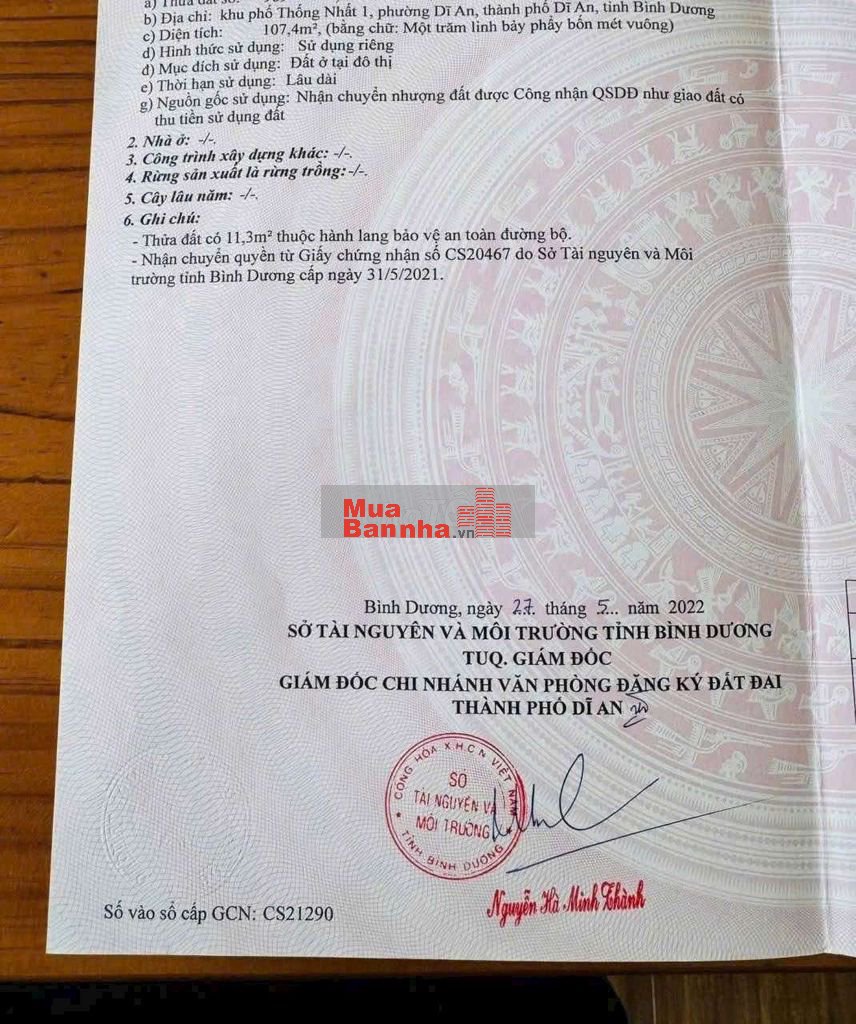 Thổ cư 100%. Sổ hồng riêng.