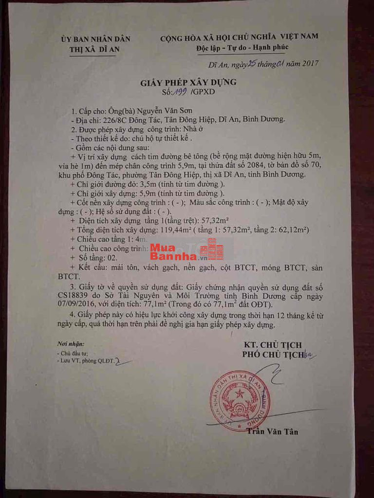 Quý vị đang xem nội dung tin rao "Bán gấp nhà 1 trệt 1 lầu 77m² gần chợ Dĩ An, full thổ cư, giá rẻ". Mọi thông tin, nội dung liên quan tới tin rao này là do người đăng tin đăng tải và chịu trách nhiệm. Phongtro.vn luôn cố gắng để các thông tin được hữu ích nhất cho quý vị tuy nhiên Phongtro.vn không đảm bảo và không chịu trách nhiệm về bất kỳ thông tin, nội dung nào liên quan tới tin rao này.