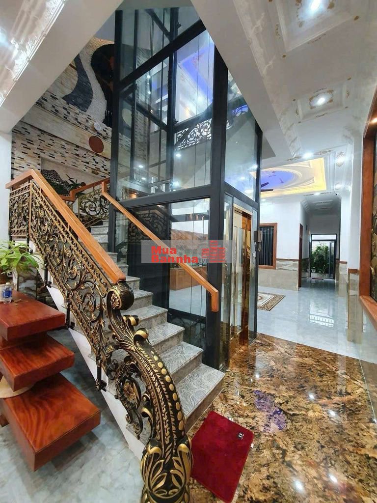 Nhà 1 trệt 3 lầu thiết kế hiện đại, sang trọng có thang máy gồm: sân xe hơi, phòng khách, bếp, phòng thờ, phòng shc, 6 phòng ngủ, sân thượng trước sau, 6wc.