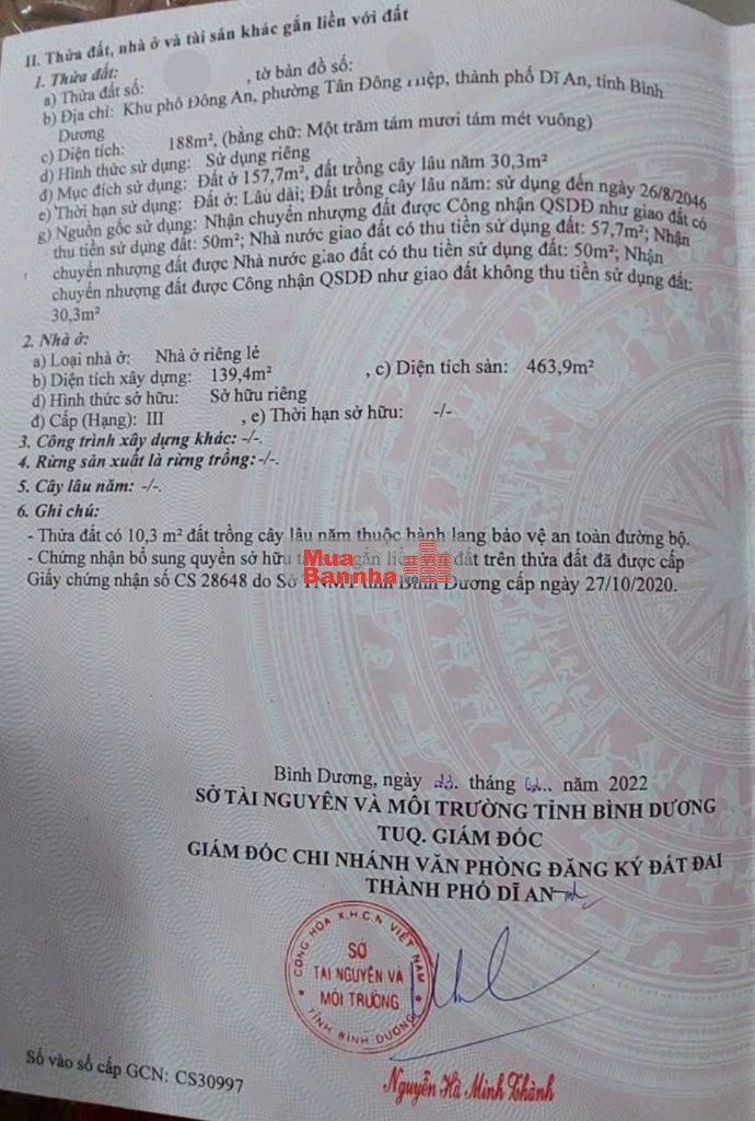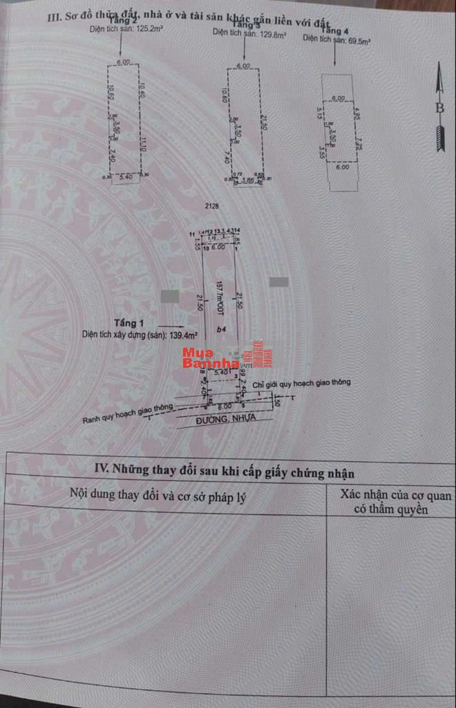 Thổ cư 157,7m2. Sổ hồng hoàn công.