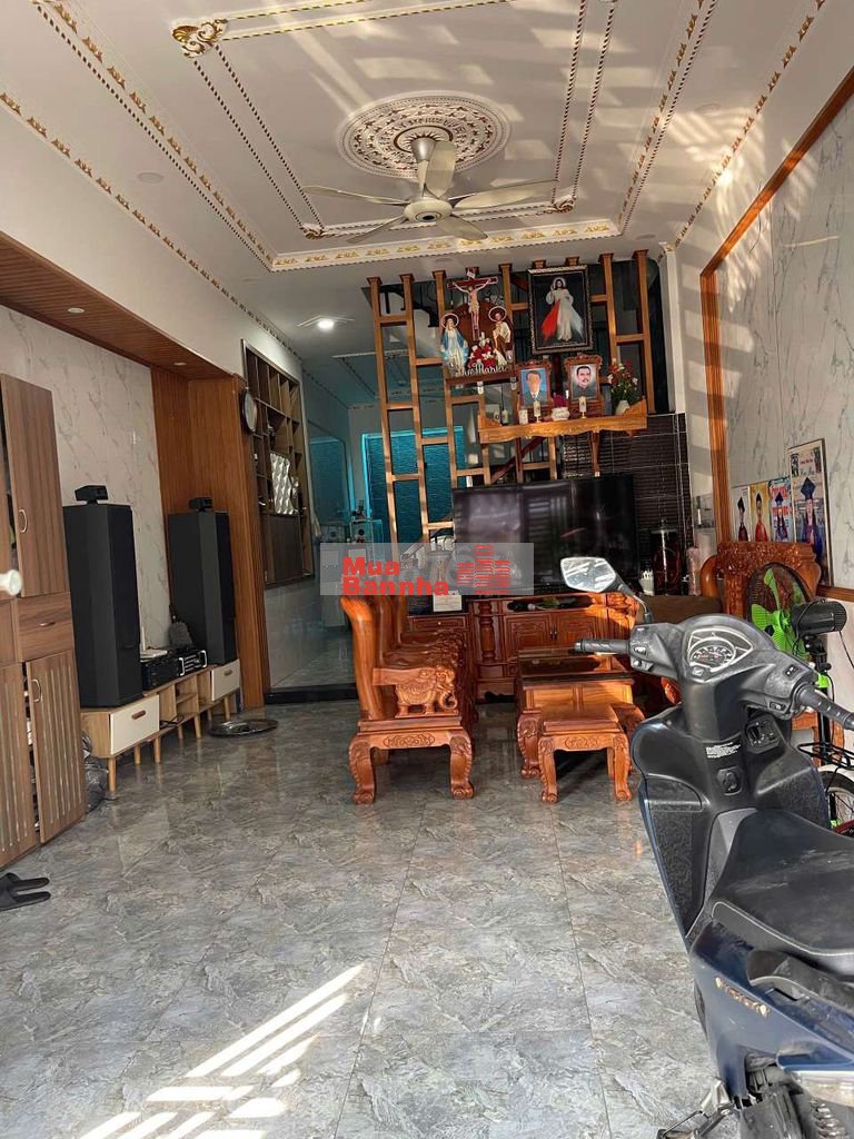 Nhà 1 trệt 2 lầu có phòng khách 4 phòng ngủ phòng thờ, bếp 4wc