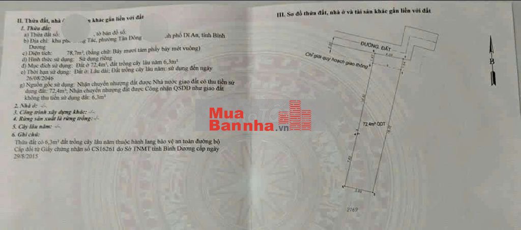 Thổ cư 72,4m2. Sổ hồng riêng