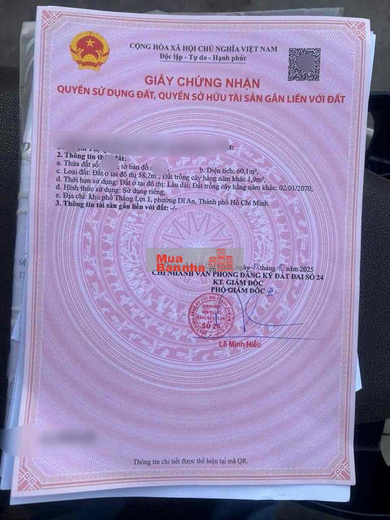 🏡 Diện tích: 60m² (thổ cư 58,2m²)