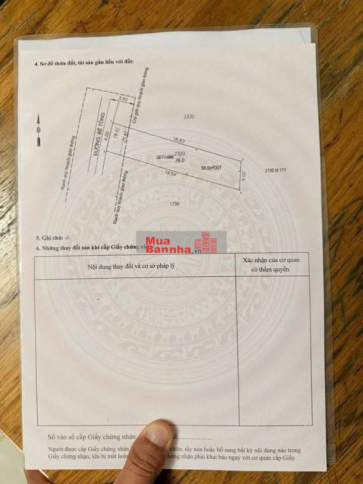 DT : 76m2 - ngang 4m - thổ cư 68m.