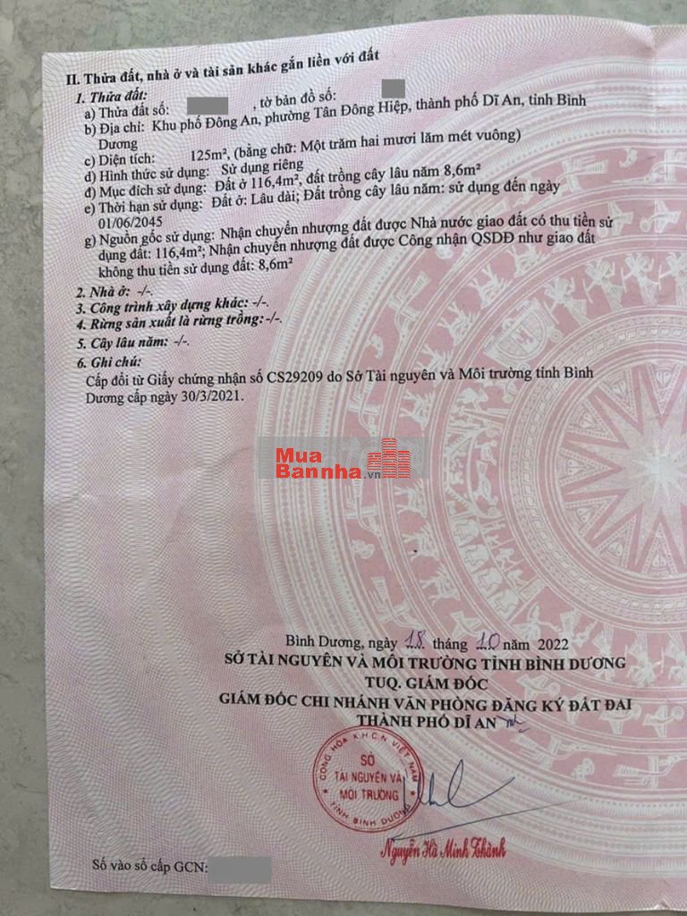 Thổ cư 116m2. Sổ hồng riêng.
