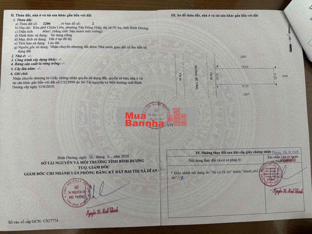 - Diện tích: 60m2. Ngang 4m. Dài 15m. Thổ cư 💯 %. Hướng Tây ☀️. Đường bê tông 2 ô tô 🚘 🚘né nhau thoải mái, đường thông 8m có vỉa hè khu dân cư an ninh .