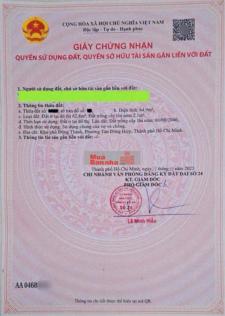 Thổ cư 63m2 . Sổ hồng riêng.