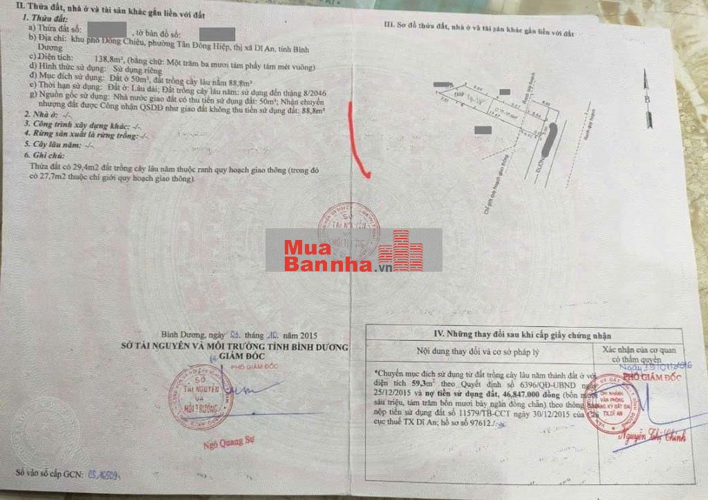 Thổ cư 109.3m2. Sổ hồng riêng.