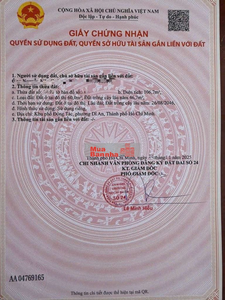 Thổ cư 60m2. Sổ hồng riêng.
