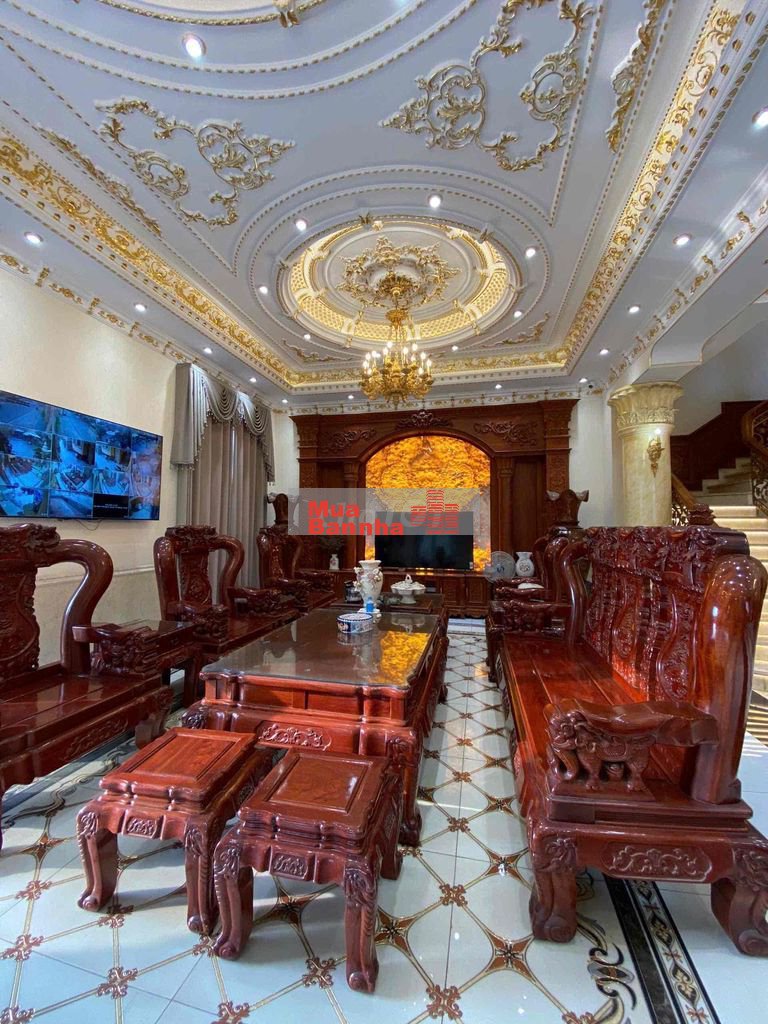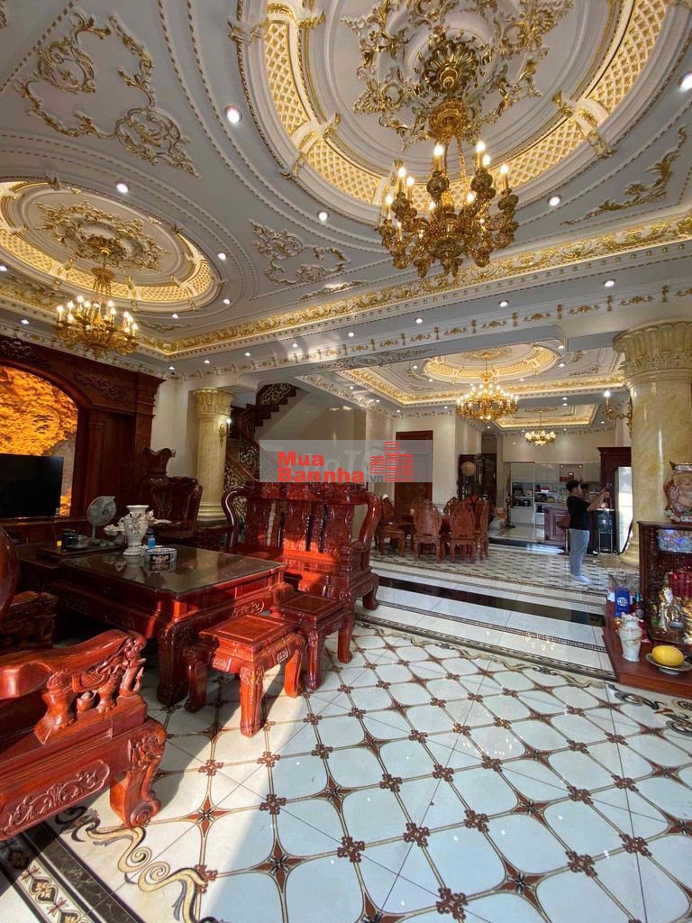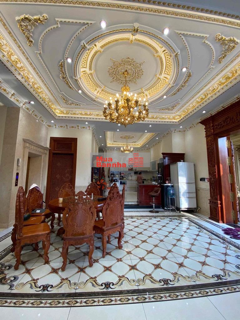 Biệt thự được xây dựng theo phong cách lâu đài tân cổ điển châu Âu, kiến trúc đồ sộ, hoa văn chạm khắc tinh xảo, cột trụ lớn, mặt tiền bề thế – thể hiện rõ đẳng cấp, vị thế và gu thẩm mỹ của chủ nhân. Không gian bên trong rộng rãi, phù hợp để ở, tiếp khách, làm dinh thự gia tộc hoặc kết hợp kinh doanh cao cấp.