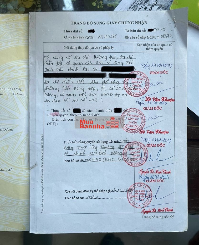 Thổ cư 100m2. Sổ hồng riêng.