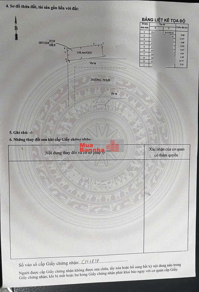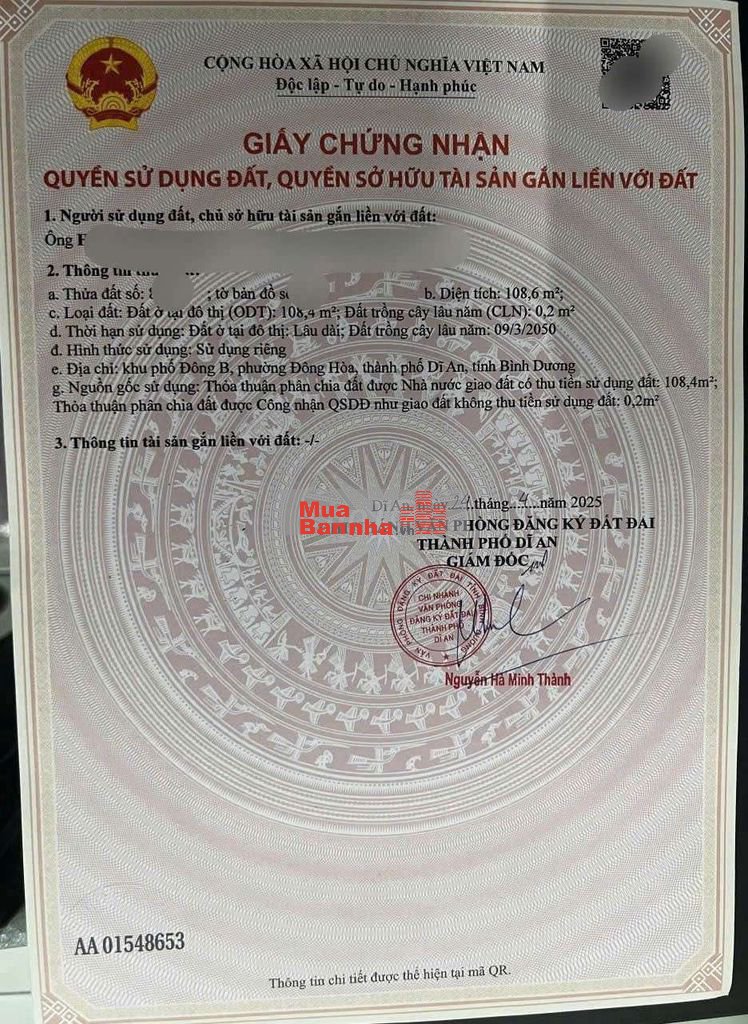 Thổ cư 108,4m2. Sổ hồng riêng.