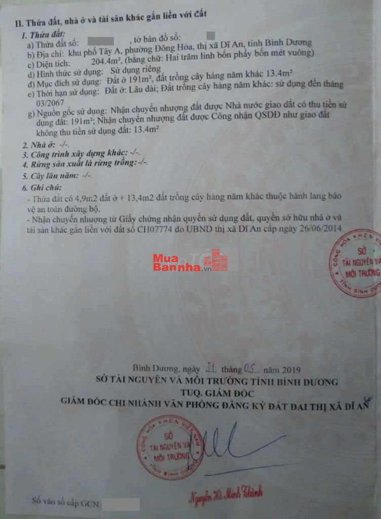 Thổ cư 191m2. Sổ hồng riêng