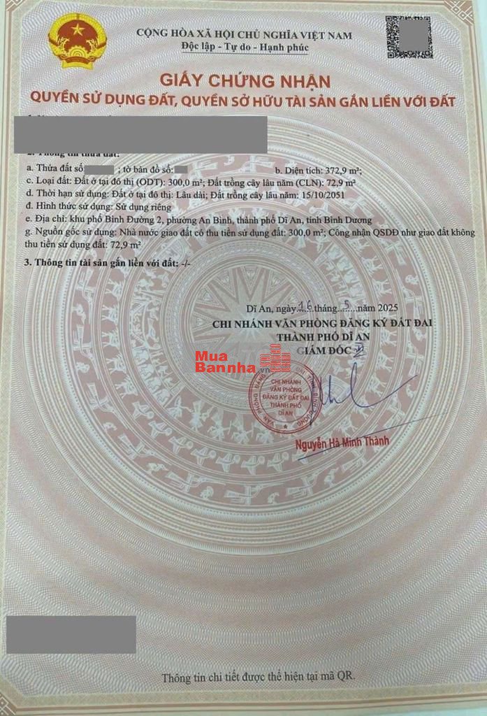 Thổ cư 300m2. Sổ hồng riêng.