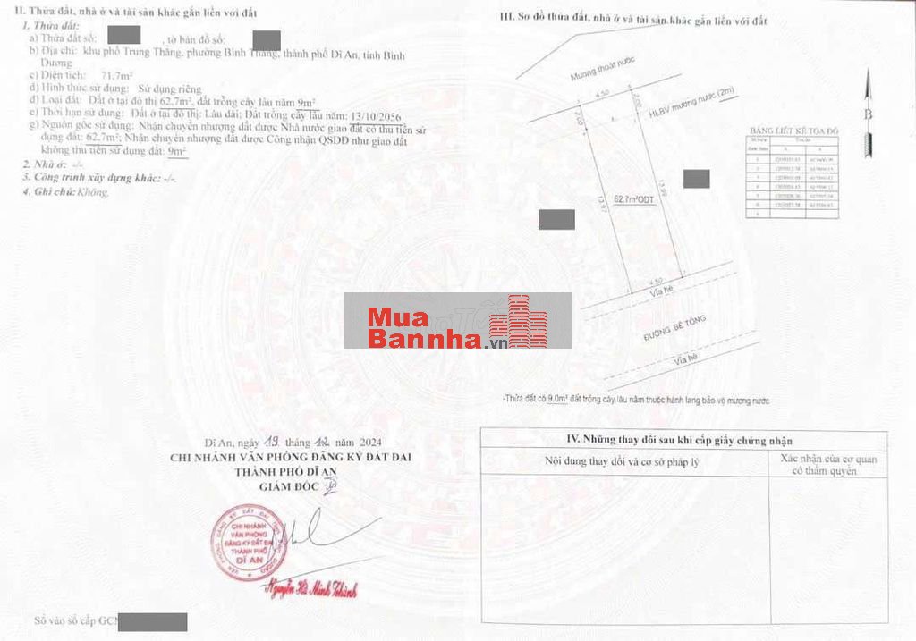 Thổ cư 62.7m2. Sổ hồng riêng.