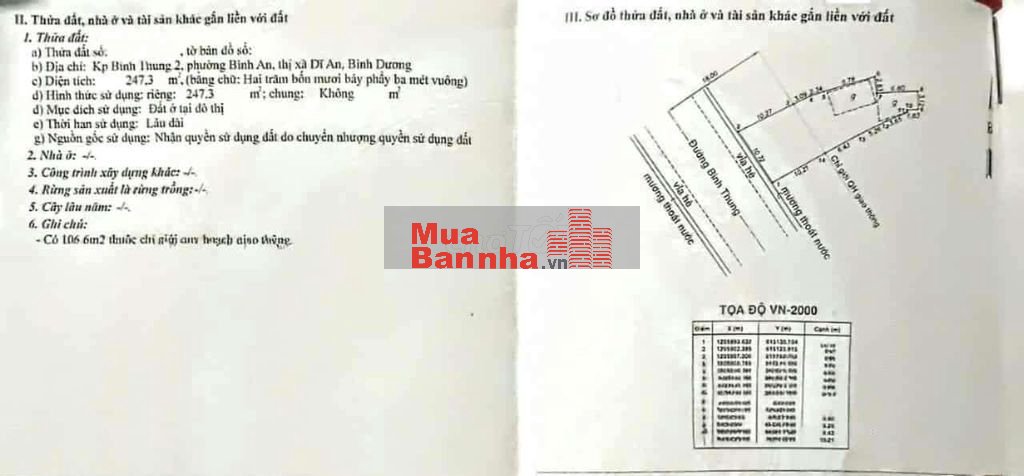 Diện tích: 247,3 m²,thổ cư 100%.