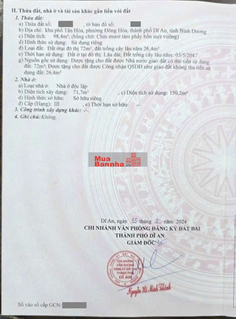 Thổ cư 72m2. Sổ hồng riêng